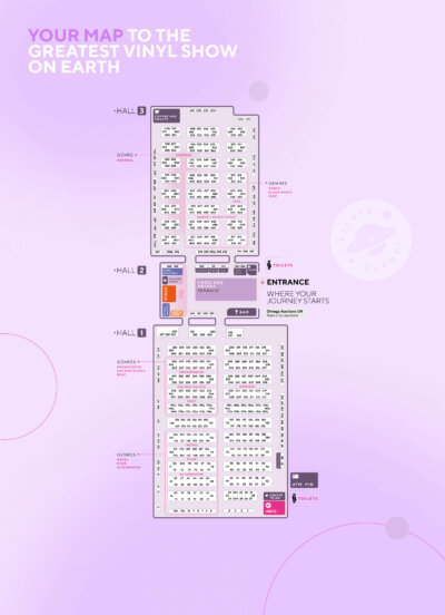 Below you’ll find the floor plan for the upcoming Spring Edition of the Mega Record & CD Fair. It gives you an early impression of the layout, so you can plan your route around the fair in advance. The event takes place in Halls 1, 2 and 3 of the Brabanthallen in ’s-Hertogenbosch.Use the floor plan to quickly find your favourite exhibitors, or let yourself be surprised by new discoveries. During the fair, a free Visitors Magazine will also be available. In addition to this floor plan, it includes the full programme for this edition.